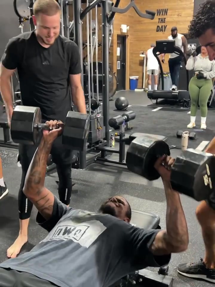 杰伦-格林用两个43公斤哑铃做卧推有吧友能超过他吗